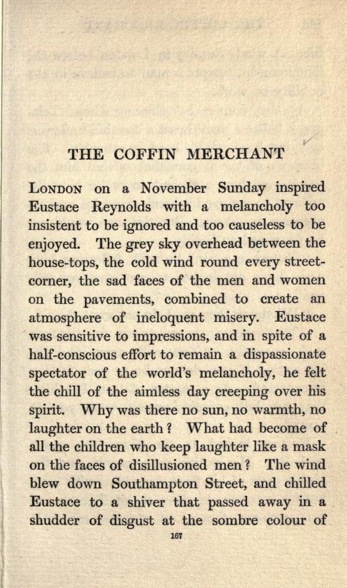 The revelation of the coffin merchant’s insanity came to Eustace with a certain relief. For the first time in the interview he had a sense of the dark empty shop and the whistling gas-jet over his head.